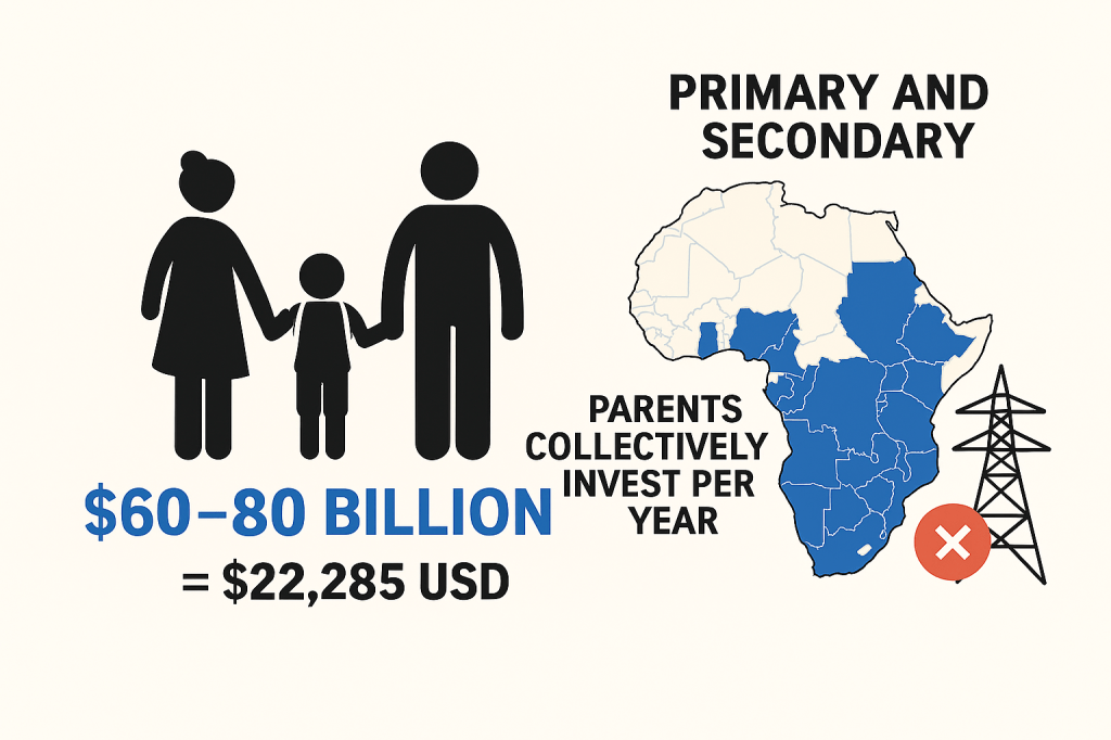 Parents in Sub-Saharan Africa collectively invest an estimated $60–80 billion USD per year in their children’s education — covering fees, uniforms, transport, meals, medical bills and digital access across primary and secondary levels.